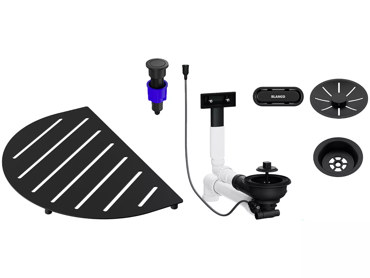 BLANCO Pakiet akcesoriów do zlewozmywaka OOVALON wraz z armaturą z korkiem automat., czarny mat 527 994