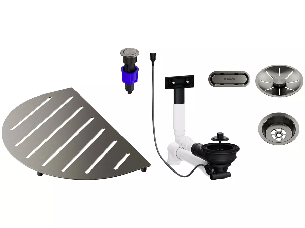 Strona główna » KUCHNIA » Akcesoria kuchenne » BLANCO Pakiet akcesoriów do zlewozmywaka OOVALON wraz z armaturą z korkiem automat., satin platinum 527 997