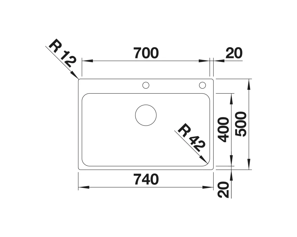 Wycięcie w blacie: 730 x 490 mm, R15