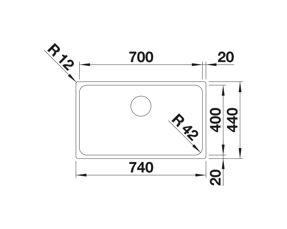 Wycięcie w blacie: 700 x 400 mm, R42