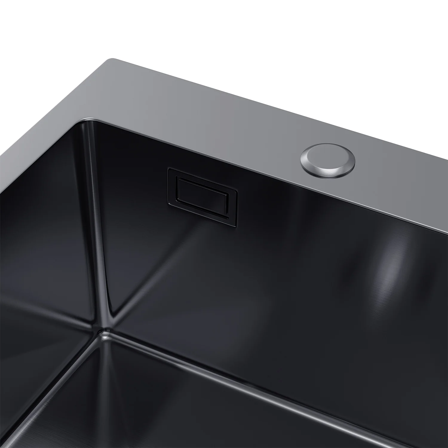 Jednoczęściowa misa formowana w głębokim tłoczeniu ze stali nierdzewnej jest idealnie gładka i pozbawiona spoin. Matowa czerń PVD pochłania ostre refleksy i buduje wyrazisty, architektoniczny akcent w kuchni — świetnie kontrastuje z blatami z drewna, kamienia lub betonu. Dno wyprofilowane w kształt „X” prowadzi wodę prosto do odpływu, a narożniki R10 ułatwiają szybkie przecieranie po pracy.
