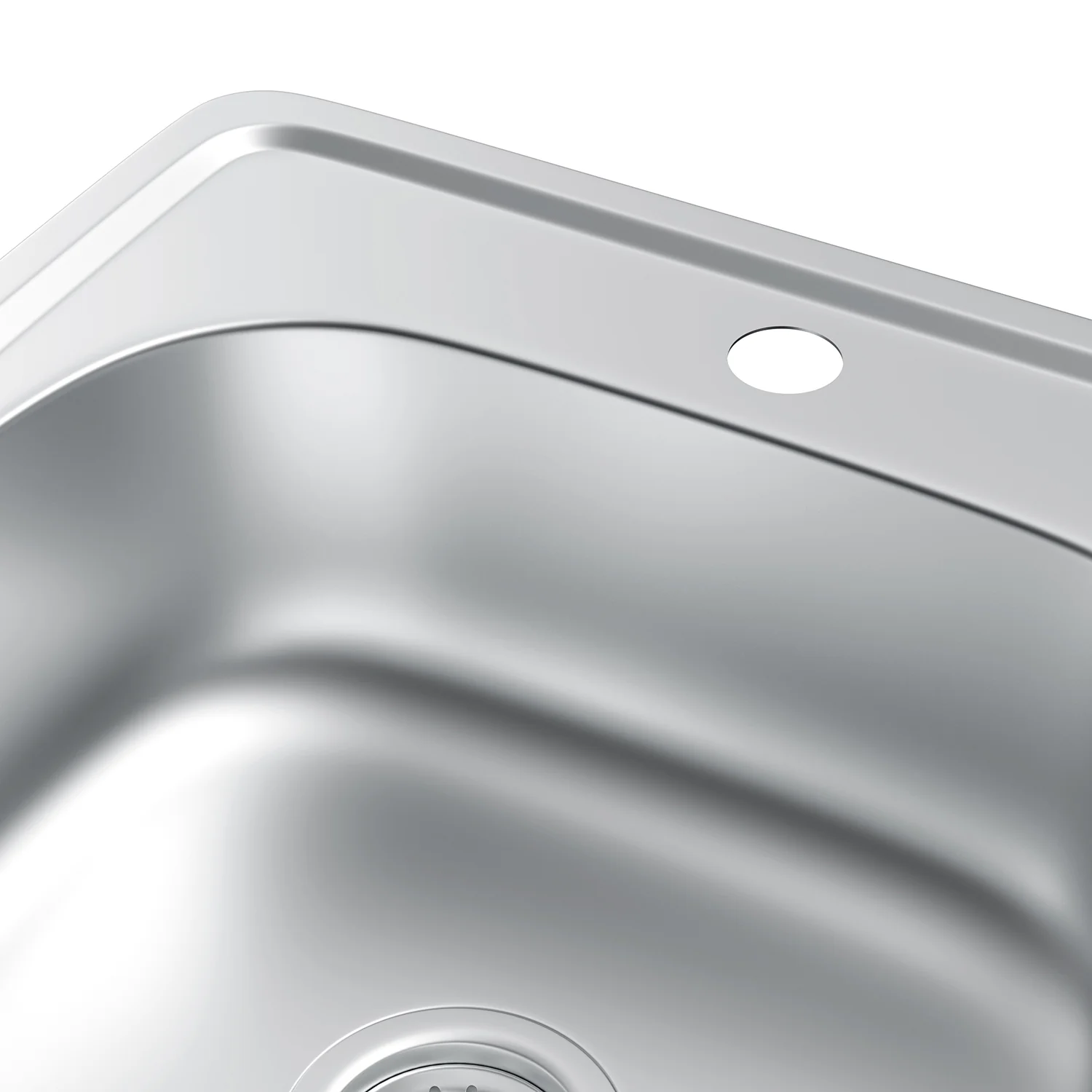 Zlewozmywak kuchenny HD4848S to kompaktowy model tłoczony z jednego arkusza stali nierdzewnej dekor, co gwarantuje idealną szczelność i brak widocznych spoin. Wymiary 48×48 cm oraz głębokość komory 160 mm sprawiają, że świetnie sprawdza się w mniejszych kuchniach, aneksach lub jako dodatkowy zlew. Konstrukcja tłoczona jest lżejsza od modeli spawanych, co ułatwia montaż i obsługę, a montaż wpuszczany pozwala na estetyczne wkomponowanie w blat. W komplecie znajduje się syfon oraz elementy mocujące – gotowe do szybkiej instalacji.