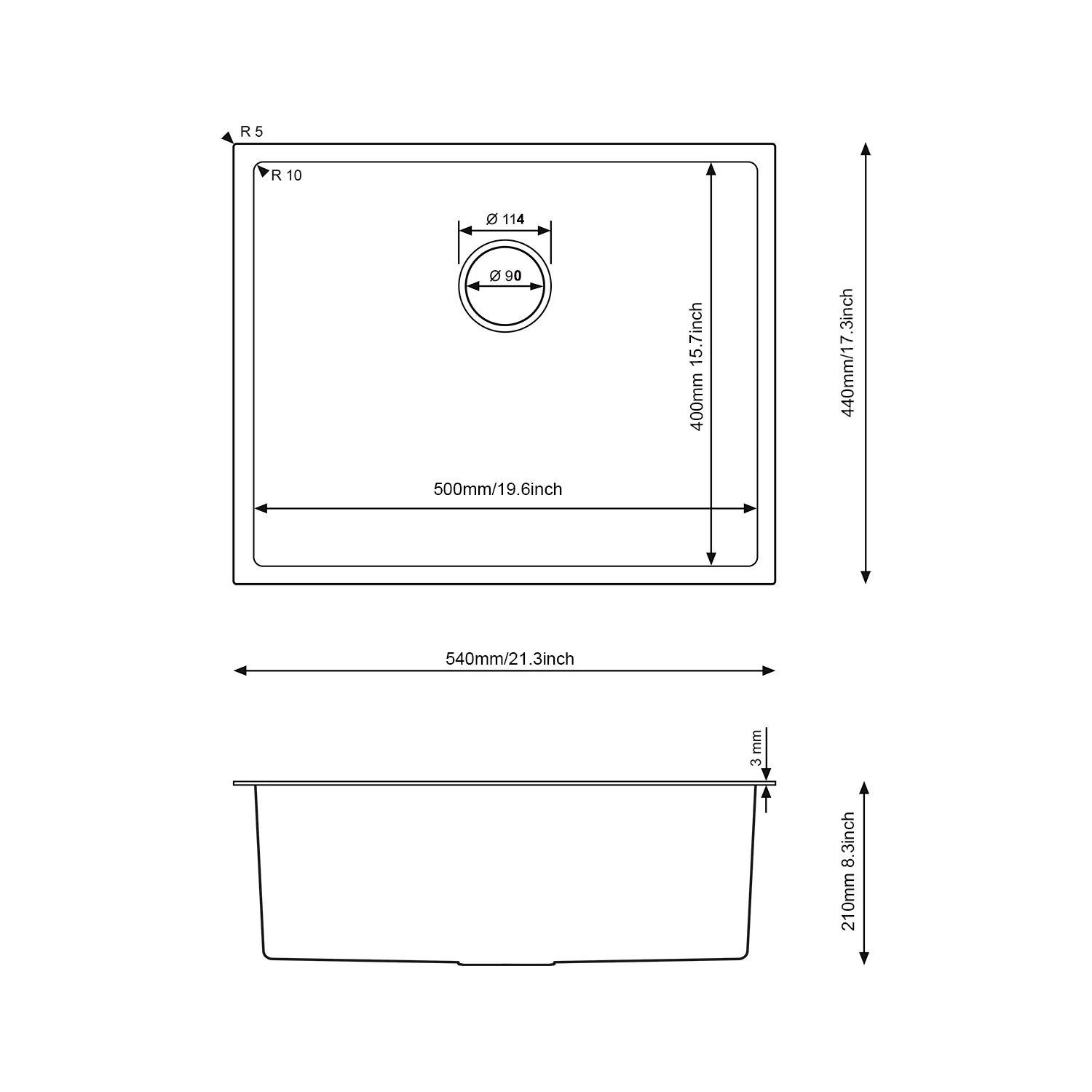 HD5444B to ręcznie spawany zlewozmywak ze stali nierdzewnej w wykończeniu PVD (czarny, mat). Format 54 × 44 cm z głęboką komorą sprawdza się w nowoczesnych kuchniach – od kompaktowych aneksów po przestrzenie open space. Promień R10 łączy elegancką, geometryczną linię z łatwą pielęgnacją, a powłoka PVD pomaga dłużej utrzymać jednolity kolor i ogranicza widoczność smug. Montaż wpuszczany lub podwieszany ułatwia dopasowanie do różnych blatów. W standardzie: mata wygłuszająca – codzienne mycie jest wyraźnie cichsze.